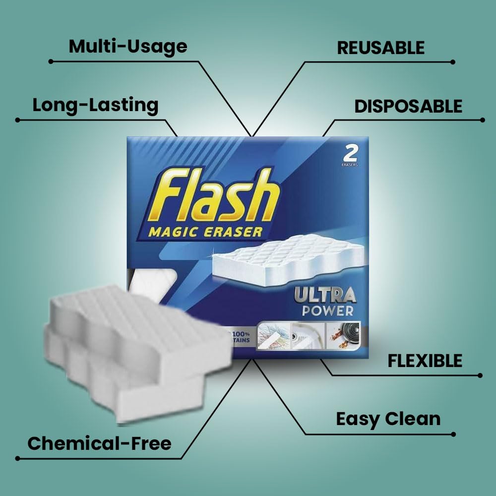 Flash Ultra Power Magic Eraser Say Goodbye to Stubborn Stains and Marks with Chemical Free Multi-Functional Sponge Long-Lasting Easy Cleaning for Comfort and Effortless Shine